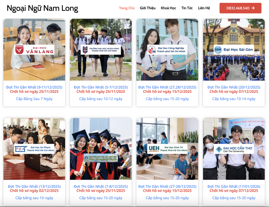 Đặc biệt với lớp ôn luyện tại Ngoại Ngữ Nam Long được chia theo từng trình độ hiện có của học viên. Sẽ có lớp phổ thông cho học viên có nền tảng, lớp cấp tốc cho học viên cần gấp và lớp hỗ trợ đầu ra cho học viên mất gốc. Để bạn dễ chọn lớp phù hợp.